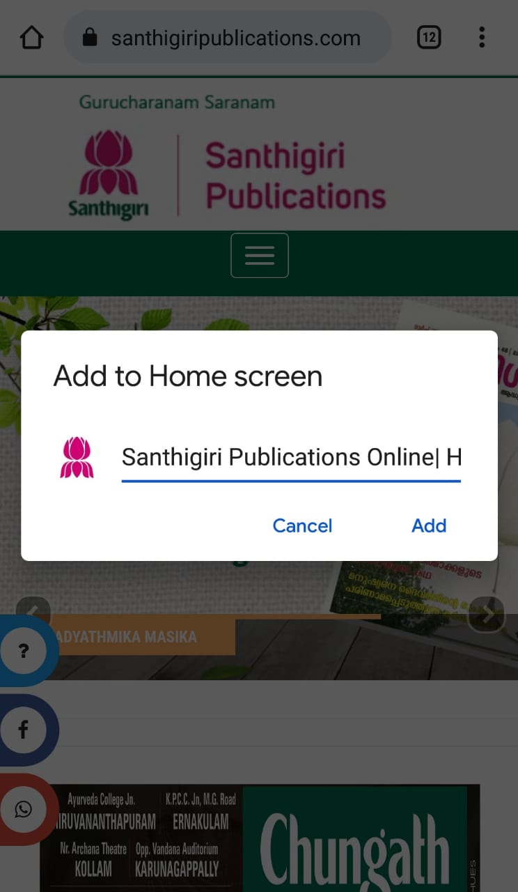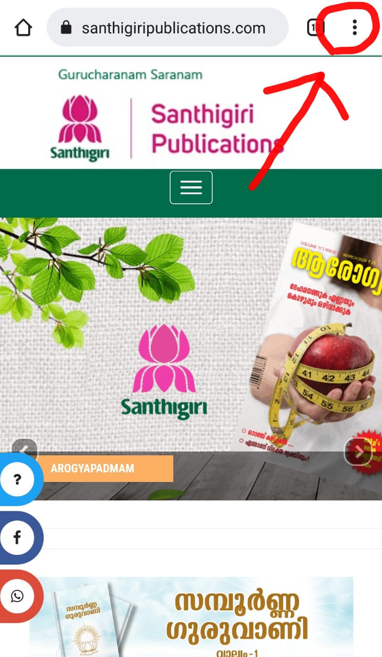 1. How To Create A Desktop Short Cut Icon Of Santhigiri Publications In Your Mobile? ?